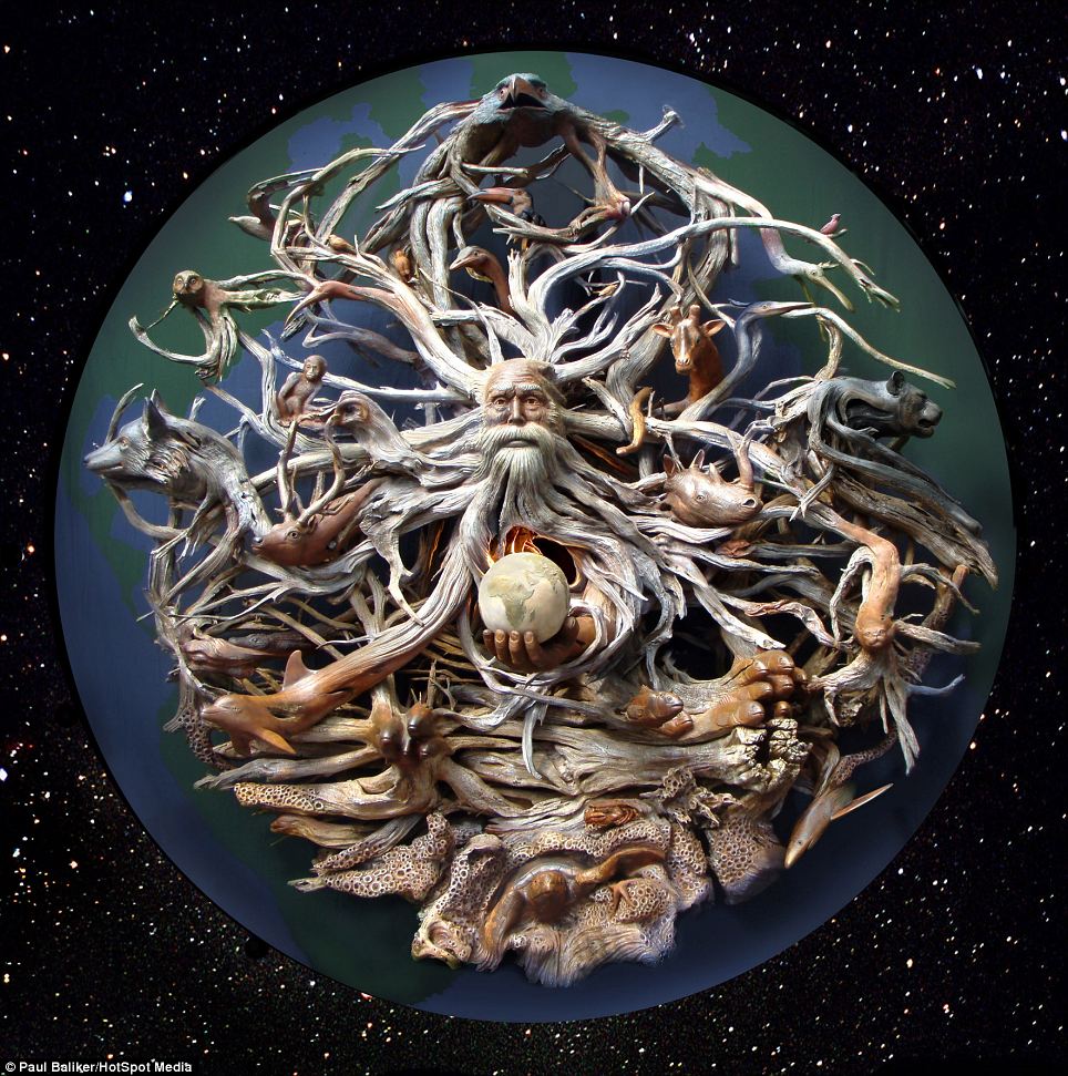 Sculptor Paul Baliker spent 6 monthy crafting his 13ft by 13ft masterpiece. It's made entirely from cedar driftwood collected around the Gulf of Mexico. |
