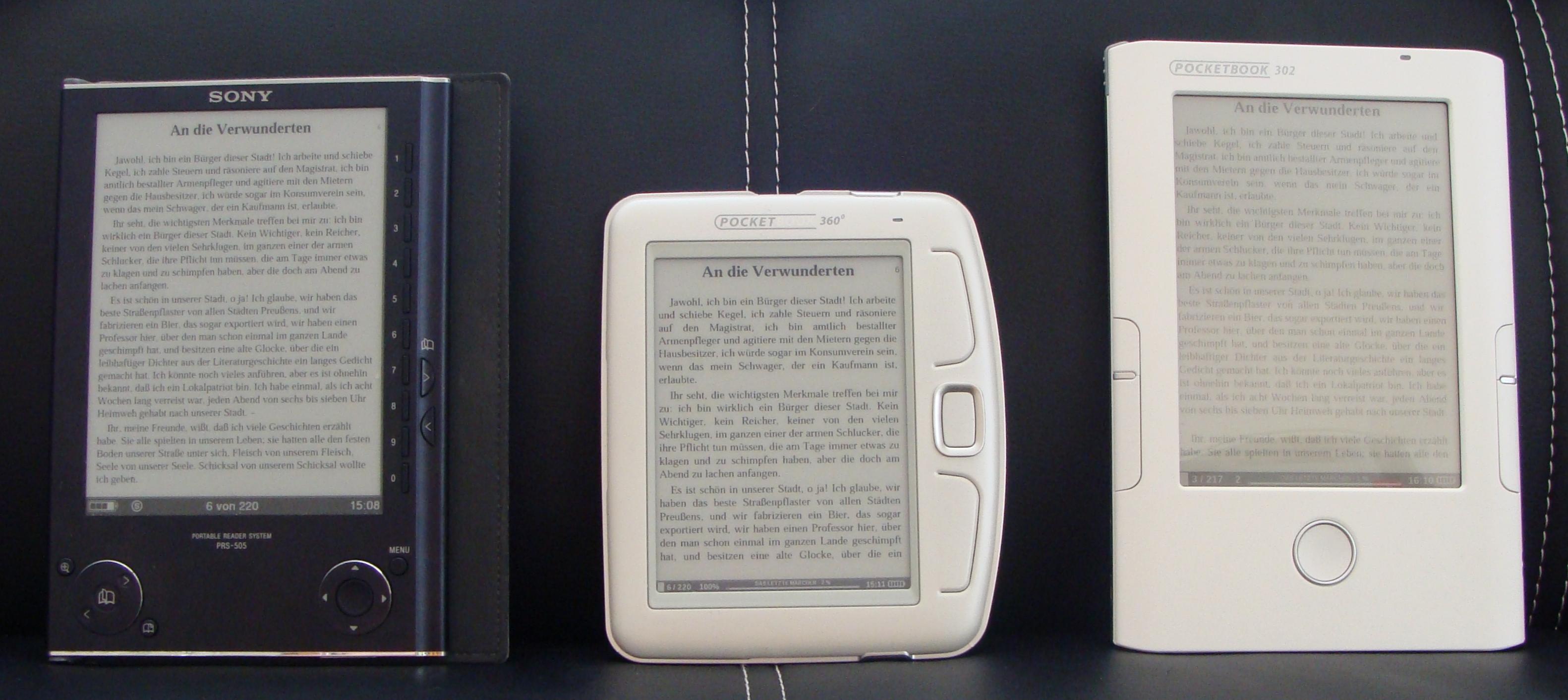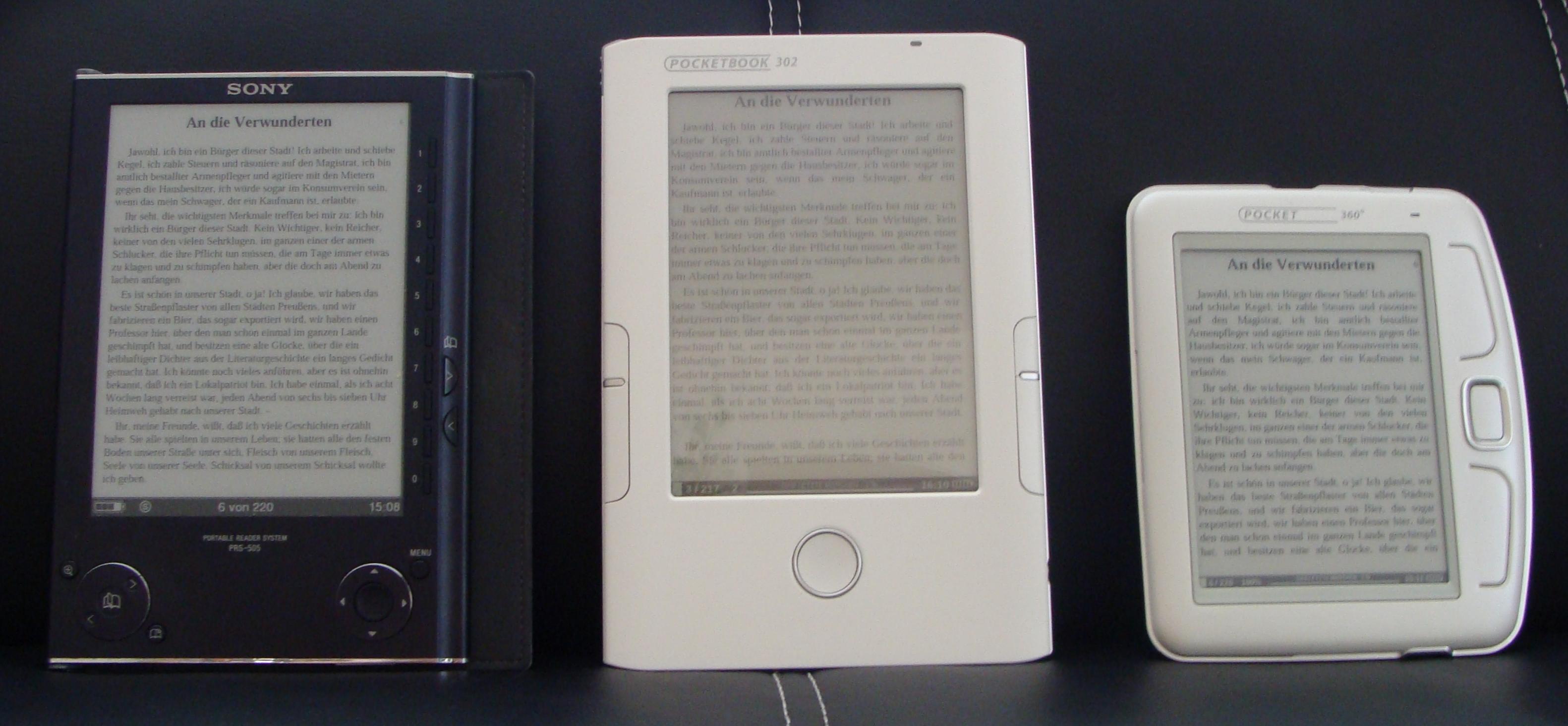 Device: Sony PRS-505, PB 360° & 302, nook wi-fi, Kindle 3