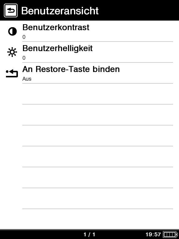 That figures. The 'books' icon triggers a collection view, the custom contrast/brightness icons trigger thumbnail view, and the 'back' icon for restore button option triggers music index options. Why can't an icon just be an icon