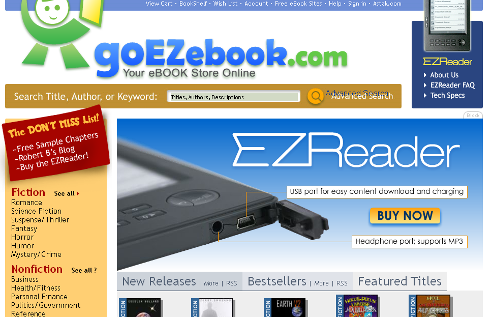Home Page: The Picture of the EZReader which shows the features and flips shots, I found very distracting. By time I looked briefly at the picture, then tried to read the feature and look back at the picture, it had flipped. Suggestion: slow the flips down by a second or two. (I assume the speed of the flips was not controlled by the speed of my computer.) Suggestion: Let the pictures flip once through, then halt on the first pictures with either thumbnails or numbers showing the remainder shots and the customer can click on whichever one he or she wishes to look at. Both on the Picture and on the sample thumbs of the books, the term "BUY NOW" was highlighted and very big. I felt that was intimidating. I felt the site was pushing too hard for a sale. I also felt that the "Buy Now" was irreversible and once I clicked it would take me to the check out. The words "Add to Cart", as shown on the pages with the books, is less intimidating, and more likely to get me to click it. On the Command Line, there is no "Home" button so that once you are in one of the other pages you can return to the Home. There is a Home button at the bottom of the page, but when I clicked it, I got a security warning about resending information. I also felt the order of the selections in the command line was not logical. Suggestion: HOME — ACCOUNT — BOOKSHELF — WISHLIST — VIEW CART — CHECKOUT — FREE BOOKS — SIGN-IN — HELP — ASTAK.COM Depending on the reason for it, I suggest the Astak.com be moved to the bottom of the page only. Although if that is where you are going to sell the Readers from, you need to make that clear, otherwise I would assume this just takes me to the company site for advertising. At the end of the Command Line is the thumbnail of the EZReader and it's selections. What happens when you have more than one product. Suggestion: add a command line item: PRODUCTS If you are going to have the Thumbnail of the product only, with it's three selections, then you will need to work on how to delineate the Specs and the FAQ when you have more than one product there. Though the majority of the FAQ and Specs will be the same, there are some differences, i.e., the Pocket Pro's SD card size, Text to speech, etc. Under the "Search" line, the descriptor line that shows where you are is in a font that is too large for the space. It always ran over to the frame below it. I did not see anything listed about the choice of colors on the Reader, just as I didn't see anything about the Pocket Pro, not to mention there colors. I assume these will show up in the check out, but it should be indicated both on that flipping descriptions and the Technical Specs. On the Free Ebook page, should you list MobileRead Forum? TECHNICAL GLITCH which I'm sure will be corrected: but on the Technical Specs page there was a coding problem: <! [end if]> showed up. Though I'm sure it's just a glitch, everytime I tried to change pages the #%&##!! Sign-in form popped up. It wouldn't take my login that I registered with, and IT WOULDN'T LET ME OUT until I cancelled about 10-15 times. This maybe because it said it was loading pictures, but it shouldn't take that long to load a picture, and it should let me login and or cancel. Apparently, logging out of your site LOGGED ME OUT OF EVERY SITE I LEAVE MY LOGIN ON, i.e., Mobileread, and another one. This was very irritating, logging out of your site should not affect my other sites. My overall impression is that this site is set up to sell books, with the reader just the means to an end. Is this what you wanted, or did you want a site to sell the readers with books as a side line? Thanks for the ability to evaluate this. AJ Still anxiously waiting to order the Pocket Pro!!! (In blue, of course) |