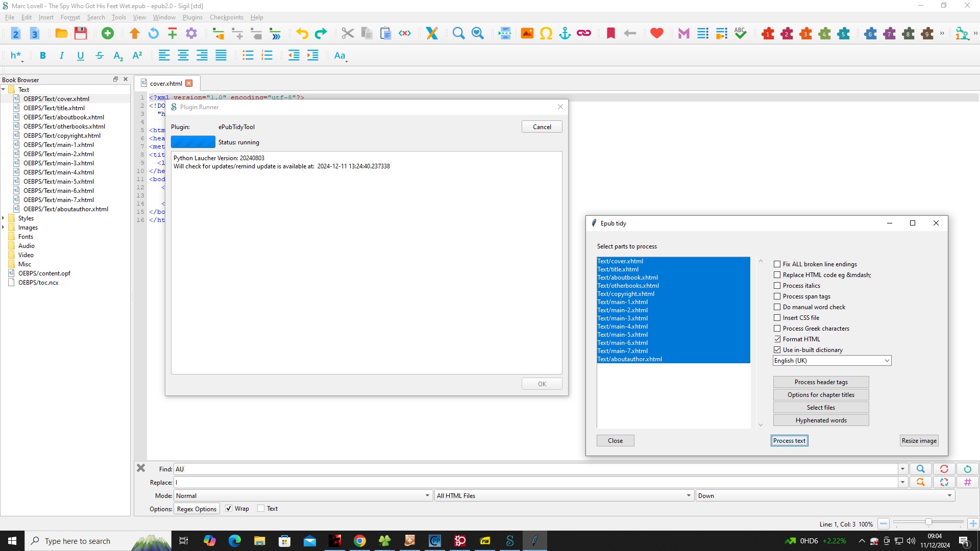 I set the find code as a clip in Sigil so I don’t have to type it every time. This all takes a couple of seconds for each book. |