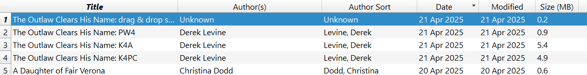 Loaded up BlueStacks and ran Kindle for Android. Downloaded 5 books and then copied them to a staging directory. This method yields KF8/azw3 files (the majority) with the occasional mobi file. Added to calibre and again no issues but covers for the the 5 books were higher resolution and in colour.