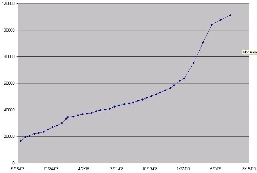 And the new trend at Sony......comes to a screeching halt or at least hits a major bump in the road. In the past four weeks Sony have added about 3,600 new titles and now have a bit over 107,000 ebooks for sale for the Readers. Last October, they had promised to reach the 100,000 mark by the end of 2008. Having met that goal (a few months late) with a strong push for a couple of months this year, they have apparently now reduced their efforts back closer to their previous rate which was under 100 new titles per day. It would be unfortunate if they continue at that old rate.