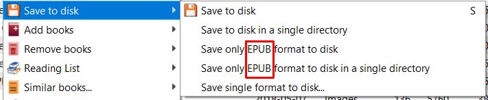 I guess that's because they don't appear in Preferences->Behaviour->Preferred output list - I wonder why? So, I put the following into Plugins Tweaks - job_spy_default_output_format = {'Media': 'CBZ'} When I went to my Media Library and opened the Save to disk tool's flyout menu, with I saw this I thought i might have seen 'CBZ' rather than EPUB, which is what I have in Prefs->Behaviour. And when I selected 3 books which only have a CBZ format and did Save to single directory I got this for all three books: Code: