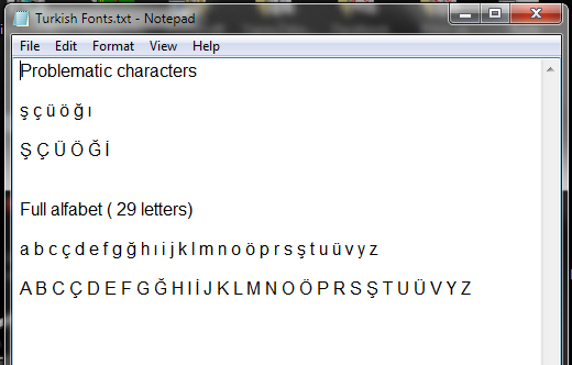 Many thanks for your kind return and support. Yes, as soon as I finished my post at this Sony-specific thread, I immediately initiated a new thread under Nook subforum here, with a direct link to this thread in order to avoid double effort and identical threads. Currently I am waiting for Nook experts' return on my issues, especially for the issue no 2. As requested, I attach all the problematic Turkish fonts in a txt document. I also attach a screenshot of the fonts so that you could yourself see if they are displayed correctly and get a hint of what we are speaking about. Besides, if you see those letters correctly with any of your fonts, this would mean that in addition to LiberationSerif, that particular font of yours does also support Turkish. This would give me more alternative fonts to use in my Nook. Your support in resolving the issues 1 and 3 will therefore be truly and higly appreciated. Happy new year to everyone. |