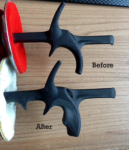 When mixed together, they form a moldable 'putty' that cures to a firm rubber shape. This can be use to make countless items, repair countless others. I'm wrapping the uncured putty around a 'skeleton' grip of an epée, squeezing it to make a custom-molded handle for the weapon. There is a new product on the market called 'Sugru' that is this same type of moldable silicone rubber, but it's rather expensive. I bought some, tried it out on my fencing foils, and decided I liked it. But as I said, it's rather expensive. BadGoodDeb (I think...) told me that there were several Youtube videos about people making their own, so I decided to try it. And other than the mess involved, I used $2 worth of silicone sealant and about 10¢ worth of corn starch, and made a lump of putty about the size of a handball... more than enough to customize my epée. It works! Other than the mess I made the first time, this is a great crafts solution for many household fixes! Here's a photo of a foil grip modded with the stuff. |
