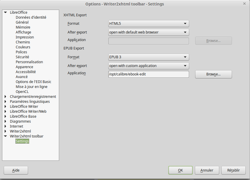 Mais le problème ne se trouve pas là, writer2xhtml est bien installé dans writer (outils >> options), mais pas de trace à cet endroit de writer2xhtmlToolbar. |