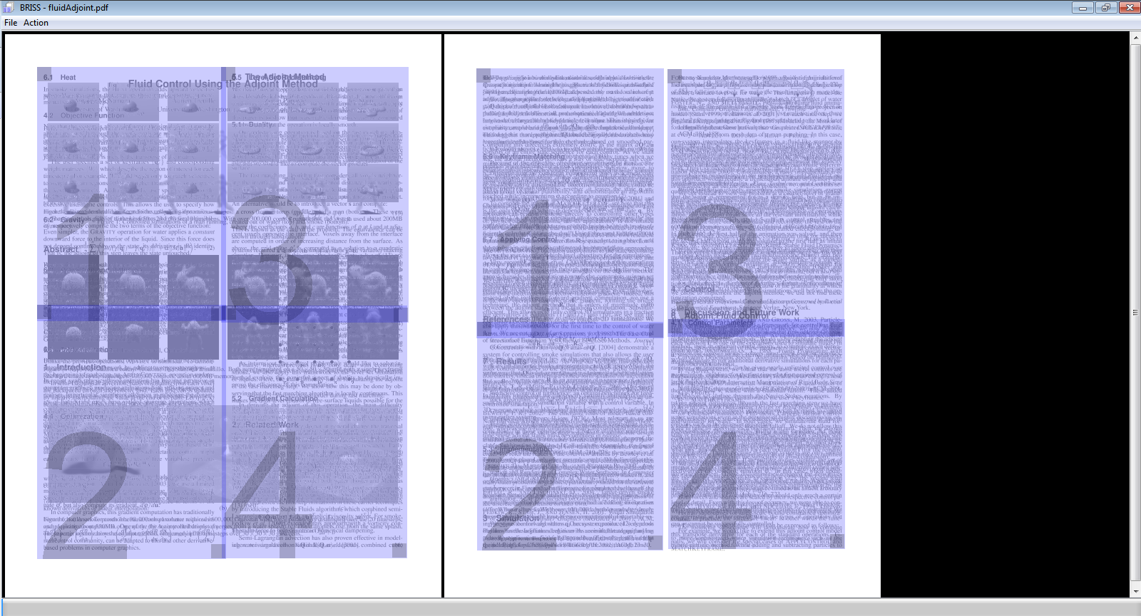 I have found this program Briss (http://www.freewaregenius.com/2011/0...ual-interface/). You can cut a scientific article in 4 pieces, so you can read it really big (like the option of zooming of 903). I attach the original file, the final file and a screenshot of how i put the boxes to obtain the file with the program. Hope it helps ! [MOD: removed sample files. It's not clear they're public domain] Last edited by pdurrant; 01-04-2012 at 09:42 AM. |