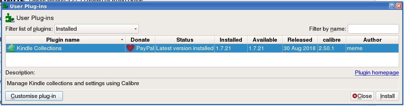 so i updated my version of calibre and your plugin today and ran the 'import collections from kindle => calibre" and found the following: please let me know if i can help you in debugging at all. i'd *love* to be managing collections in calibre; it's about the only thing i still do on my kindle (which is too difficult to manage with too many books & lists) calibre, version 3.30.0 ERROR: Unhandled exception: <b>TypeError</b>:unhashable type: 'list' calibre 3.30 embedded-python: True is64bit: True Darwin-17.7.0-x86_64-i386-64bit Darwin ('64bit', '') ('Darwin', '17.7.0', 'Darwin Kernel Version 17.7.0: Thu Jun 21 22:53:14 PDT 2018; root:xnu-4570.71.2~1/RELEASE_X86_64') Python 2.7.12 OSX: ('10.13.6', ('', '', ''), 'x86_64') Interface language: None Successfully initialized third party plugins: Gather KFX-ZIP (from KFX Input) (1, 8, 0) && DeDRM (6, 5, 4) && Package KFX (from KFX Input) (1, 8, 0) && APNX Generator (1, 1, 0) && Set KFX metadata (from KFX Output) (1, 22, 0) && KFX Output (1, 22, 0) && Barnes & Noble (1, 2, 15) && Goodreads Sync (1, 12, 0) && Manage Series (1, 2, 8) && Extract ISBN (1, 4, 4) && Goodreads (1, 1, 14) && KFX metadata reader (from KFX Input) (1, 8, 0) && KFX Input (1, 8, 0) && Count Pages (1, 8, 2) && Annotations (1, 8, 0) && Modify ePub (1, 3, 13) && Reading List (1, 6, 6) && X-Ray Creator (3, 1, 2) && Quality Check (1, 9, 11) && Kindle Collections (1, 7, 21) && Find Duplicates (1, 6, 3) && Prettify Cover 0.9.12 && Hyphenate This! (0, 0, 8) Traceback (most recent call last): File "calibre_plugins.kindle_collections.ui", line 173, in import_kindle_collections File "calibre_plugins.kindle_collections.import_collect ions", line 58, in run File "calibre_plugins.kindle_collections.kindle_boo ks", line 36, in init File "calibre_plugins.kindle_collections.kindle_boo ks", line 59, in __init__ File "calibre_plugins.kindle_collections.kindle_boo ks", line 360, in load_kindle_books TypeError: unhashable type: 'list' |