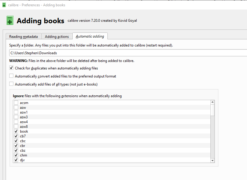 I have mine setup to exclude all the files types that I don't want to automatically import especially pdf, txt and zip files so that it doesn't interfere with normal browser downloads. |