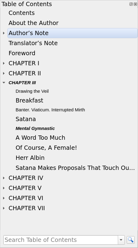 The issue I'm facing in particular is that when I click an entry, the font changes from normal to bold italic and reduces in size thereafter by about 80%, without restoring to it's original size. Is this behaviour intended? Having a mechanism to visually see the sections that have already been visited can potentially be useful, of course, but the reduction in font size creates a strange clash of styles that's quite off-putting. |