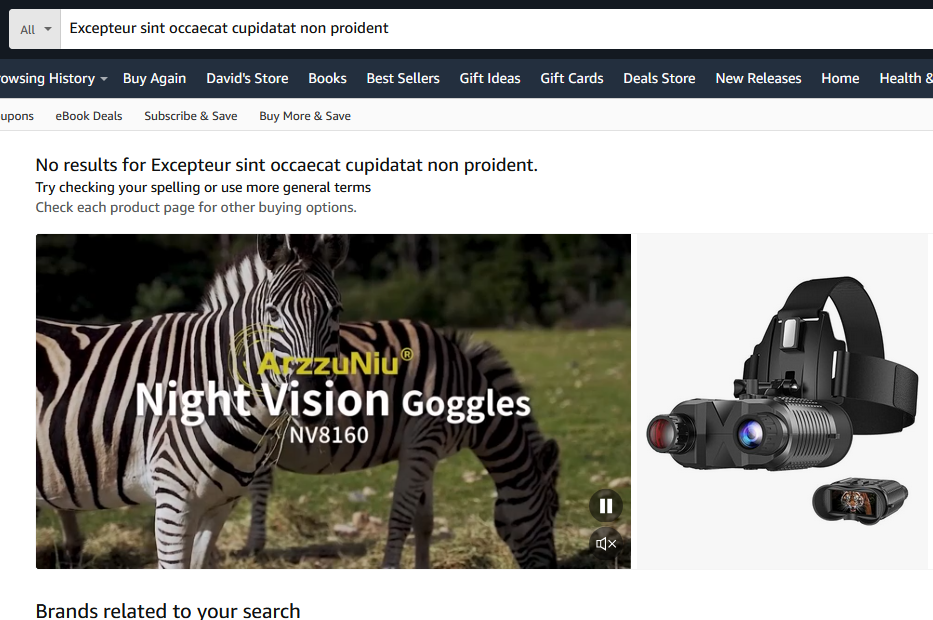Talking about Amazon search, I am still surprised by the difference between search results on Amazon.com and Amazon.ca. Amazon.ca seems willing to admit that no search results were found while Amazon.com found 6 results for my search on "Excepteur sint occaecat cupidatat non proident" which I lifted from a Lorem Ipsum page. Oddly, Amazon.ca had 5 of the 6 items so how does Amazon.com match them while Amazon.ca does not?