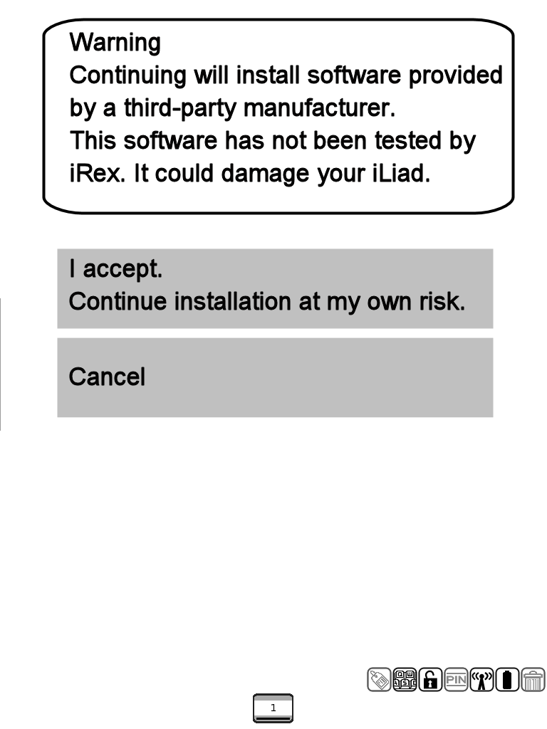 ![]() And BTW, someone could write a graphical ipkg frontend. With scripts that would be rather hard to do in a reliable way. I could imagine that iRex would be willing to add that frontend to the standard installation if it was well written and included a big enough warning message. Underscore works? Good, I'd prefer that to the dot, too. Last edited by Henry Loenwind; 04-19-2007 at 10:17 AM. |