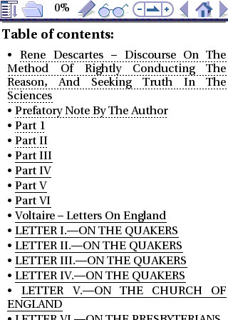 I updated my conversion script and automatically generated hyperlinked tables of contents for the Plucker version: