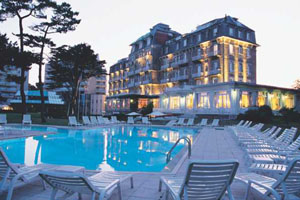 We were at a conference in an hotel on a beach, a largish conference in the North of France, in the beginning of June. The day was coldish, with a light drizzle. We were in the swimming pool at street level just me and my friend Julius G*, when a nice and rather pretty lady that had been walking along the street saw us and apparently was taken by a sudden fancy. She got into the terrace and efficiently undressed, neatly folded her clothes on a chair and jumped in the swimming pool. I did not want to be ogling but I could not avoid noticing that she was a natural auburn. Julius was frozen stiff. Friends and colleges were staring at us from inside the bar with open mouths , crowding over the large windows. To me the gesture appeared absolutely and genuinely admirable and as soon as it was convenient and the lady turned to us, a defiant look in her face, I found the right attitude and the right words to express my appreciation. I offered the use of my bathrobe, that was graciously accepted ... La Baule, Hotel Royale |
