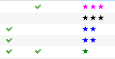 ![]() Did it by coloring the rating column using the following template: Code: