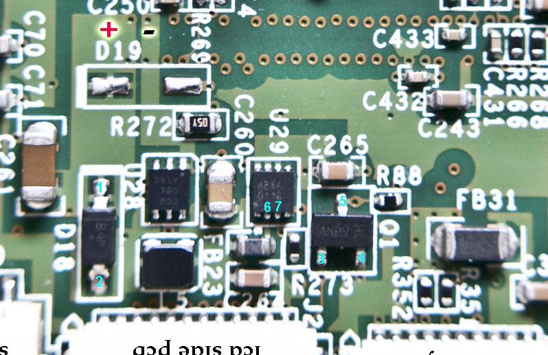 I tested d18, and before the diode, I got a reading of 4.96v @ 0.25a and after the diode a reading of 4.88v @ 0.20a. I will also try to get a better lighted shot of the area tomorrow.