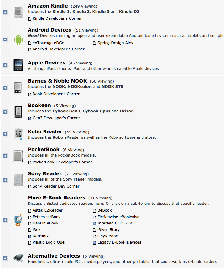 Device: Kindle 2 International, Sony PRS-T1, BlackBerry PlayBook, Acer Iconia