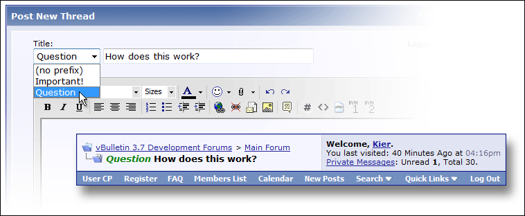 Until now, this was not possible without some serious code hacking (which we usually try to avoid). The developers of our forum software gave us a glimpse of the next forum update, and fortunately, it'll include those prefixes! So once the next update is released, we'll have the tools to define different thread prefixes for different forum sections. Quote: