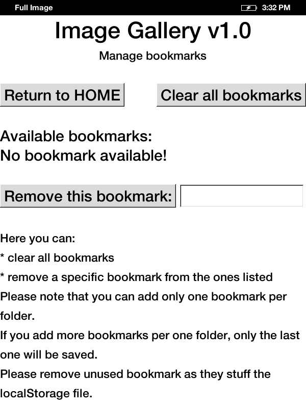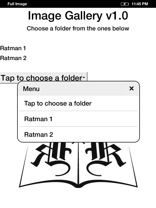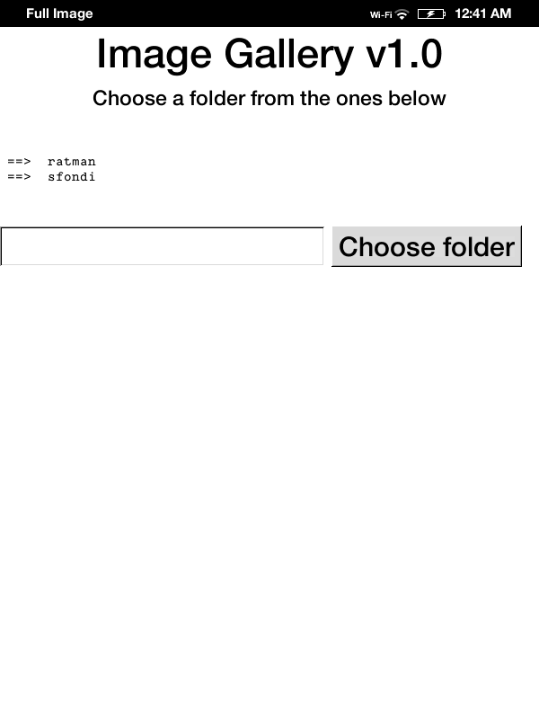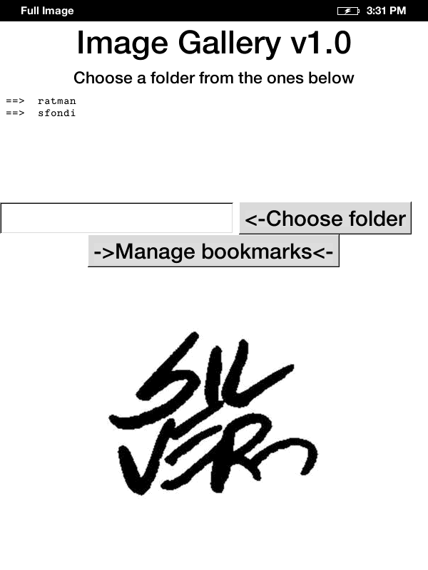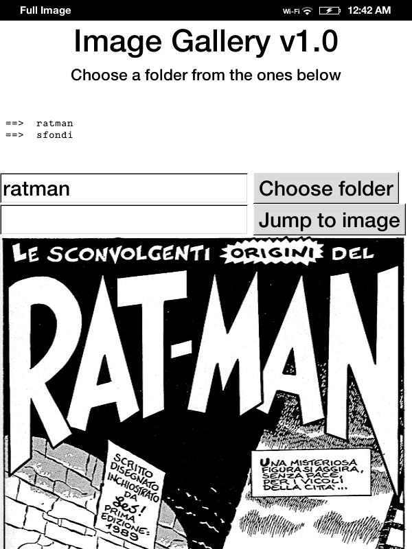 ![]() I added: - dropdown menu to choose which folder open (based on the folders you have in your /documents/Gallery/ directory). This is made through a long list of shell command and some html code - page number is now shown in the "jump to page" box (in the menu bar while reading) - new welcome image - controls on non-existing images (i.e negative page numbers and pages after the last one) and on non-existing folders - fixed the page size problem: scroll down it's no longer needed However, I still have the status bar!