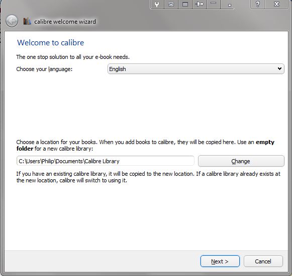 Windows 2000 & XP ===> %SystemDrive%/Documents and Settings/<user name> Windows Vista & 7 ===> %SystemDrive%/Users/<user name> On Windows 7 I am positive that the calibre install wizard defaults to the <userhome>/Documents directory, I'd put money on the Wizard defaulting to the <userhome>/Documents directory on Vista and to <userhome>/My Documents directory on XP & 2000. I just did a fresh install in Windows 7, below are screen shots showing that calibre defaults to the users Document folder (aliased as My Documents for legacy support) Having the Calibre Library in the users (My) Documents folder is a bad idea on 2 counts: