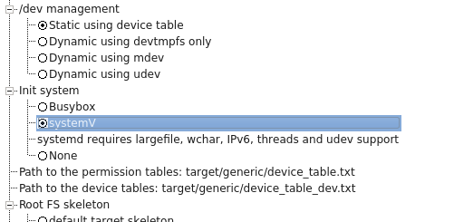 Originally: # CONFIG_MDEV is not set # CONFIG_FEATURE_MDEV_CONF is not set # CONFIG_FEATURE_MDEV_EXEC is not set # CONFIG_FEATURE_MDEV_LOAD_FIRMWARE is not set I also elided the systemd as you pointed out. So I'm leaving it out of this first build, if you want it I'll just do it again with it in. |