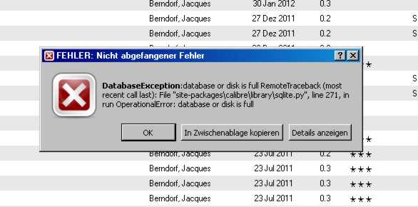 Maybe a problem with the DB? Here are two attachments, I stumbled making a catalog. I start calibre with an batch: start C:\Programme\Calibre2\calibre.exe --with-library Z:\BUCH\Klaus. Are there any other experiments i can start? Klaus EDIT: Now i start Calibre directly (C:\Programme\Calibre2\calibre.exe --with-library Z:\BUCH\Klaus), and the last hour working with calibre NO CRASH. Any explanation???? Last edited by KlausRegenbrecht; 10-16-2012 at 07:18 AM. |