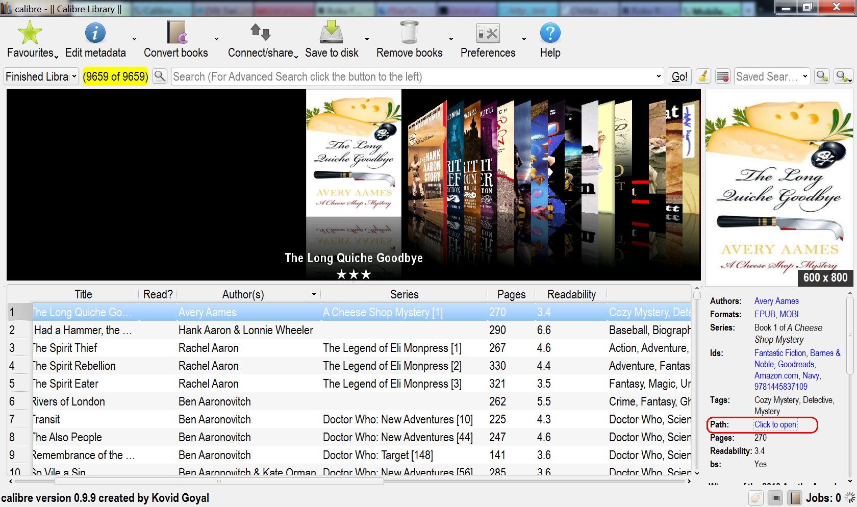 Select the book Choose Modify Epub Check the remove the existing cover box Click Ok Click the popup Done Could the book your testing have the cover removed and the first image is a copy of the cover? If you provide a link where I can get a book you tried to remove the cover I'll be glad to look at it closer. He definitely is short on manners, to be more precise he is ... Last edited by DoctorOhh; 12-08-2012 at 04:30 AM. |