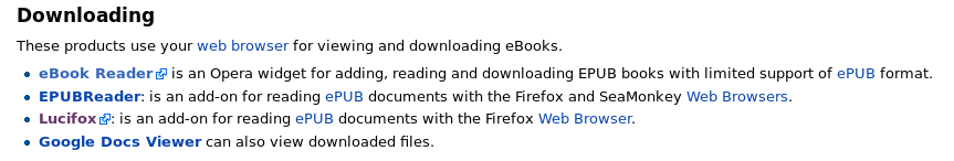 I just accidentally found - again - a Firefox extension which works pretty well at least to display EPUB (it can do other things but I did not try them). I had used it previously and thought it was dead. This version is said to be from the 9th of February 2013. It's really worth a try. https://addons.mozilla.org/en-US/firefox/addon/lucifox/ Last edited by roger64; 02-24-2013 at 06:03 AM. |