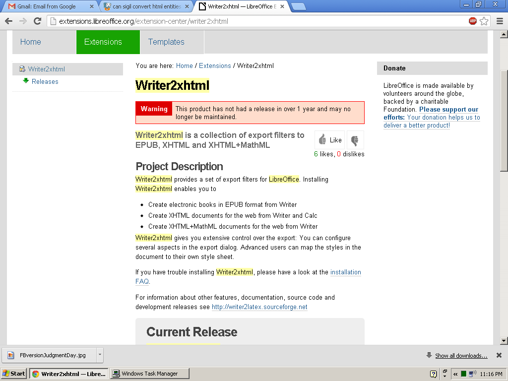 http://extensions.libreoffice.org/ex...r/writer2xhtml (Or see the screen shot.) I'm using LO 4.0.4.2. So am I worrying about using it or just going ahead and giving it a shot? Thanks. Quote:
