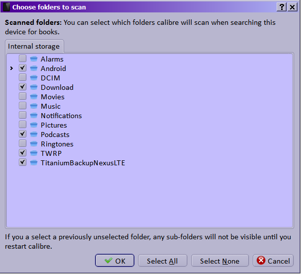 Is there a way to have it not scan new folders you have added since the last connect? I've noticed that when I add new folders that they are automatically selected and scanned the next time I connect and I need to deselect them. I just got a Nexus 7 lte and was going to connect it before I add a lot of data, but it seems like that won't help.