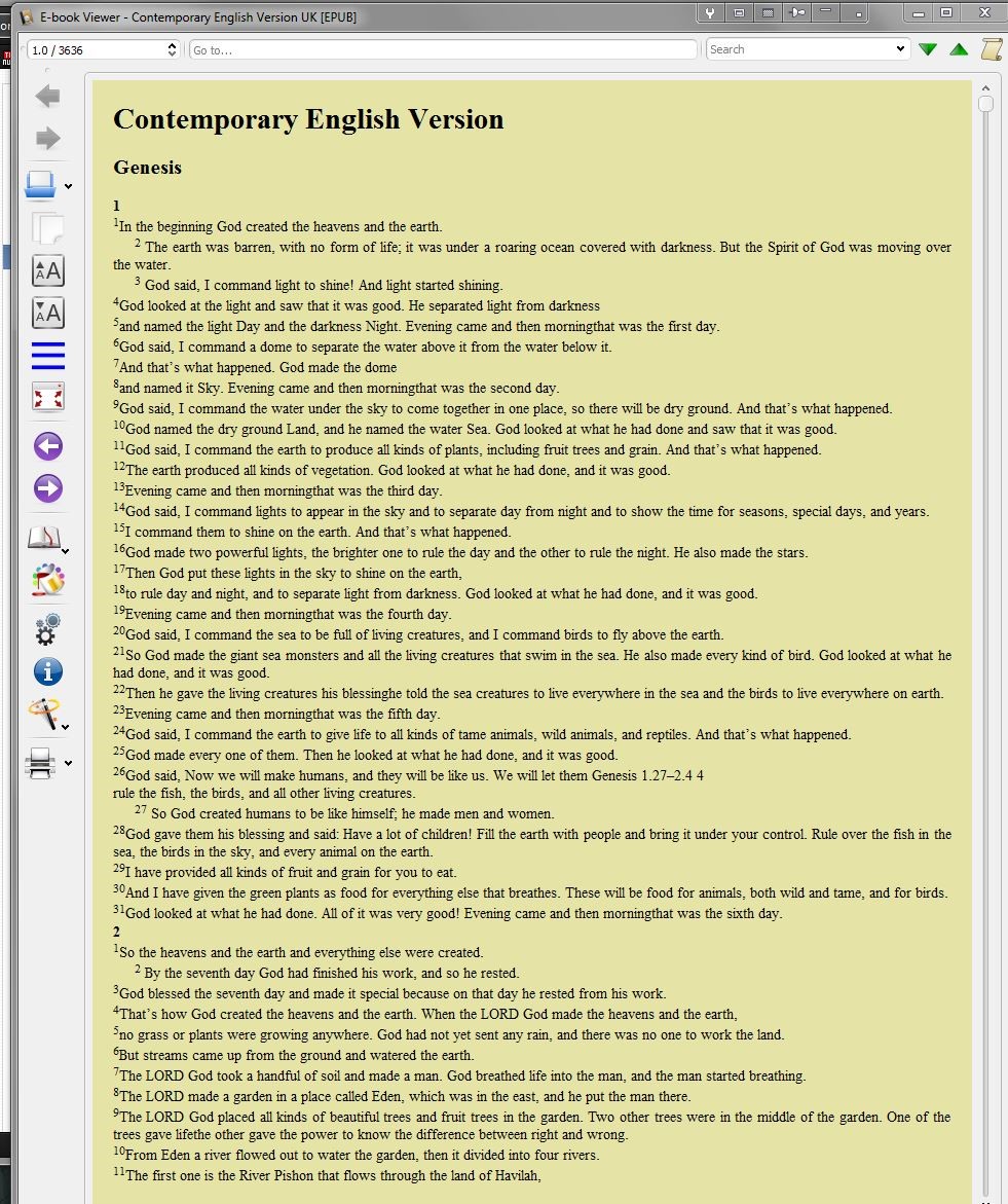 Fraid my tech-knowledge isn't what it used to be (grin). This is completely alien to me. And yeah, it's CEV or nothing. Would not touch an NIV and most other MAJ text Bibles. It's surprising the CEV is as true to the original as it is (it does have the usual missing verses etc... but at least the translation itself isn't so pointedly lacking). And it seems CEV has only been translated mobile in Kindle format. And I've gotten nowhere trying to convert it. Looks really nice on my Kindle for PC, but won't convert for the Kobo. |