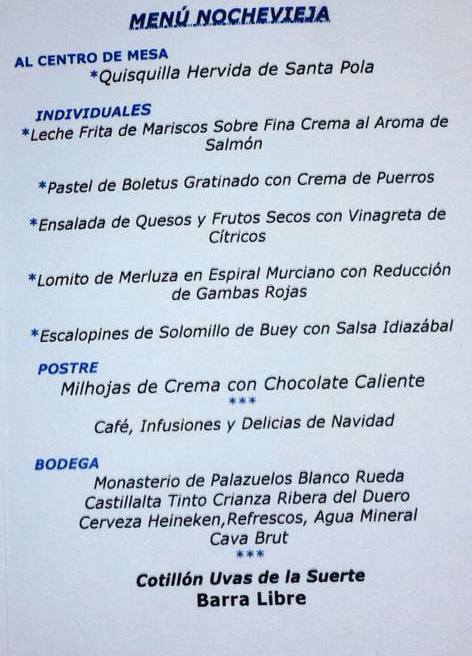 ).Ich werde morgen einkaufen gehen und ad hoc mich für eine Nachspeise entscheiden. Sonst 1 Flasche Marques de Riscal 2008, 1 Veuve Cliquot, und für jeden 12 Trauben natürlich
