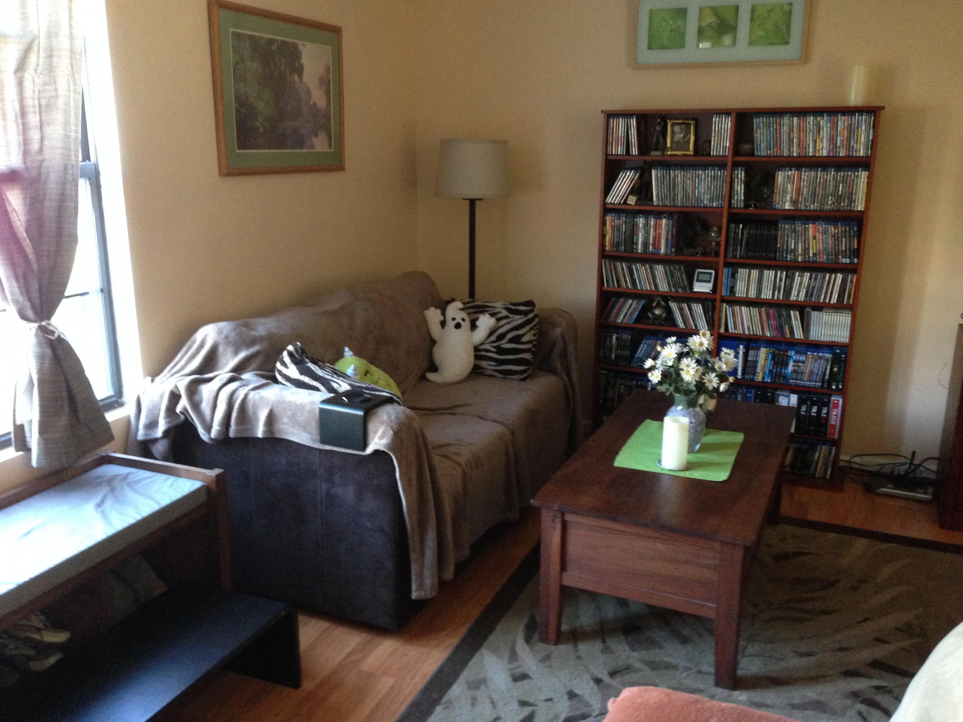 I only have about 6 bookcases left. It's weird, having furniture-arrangement options I never would have considered before.