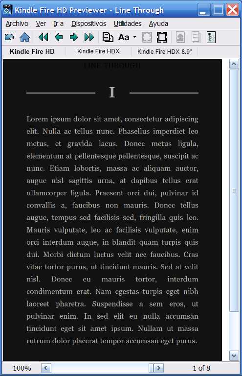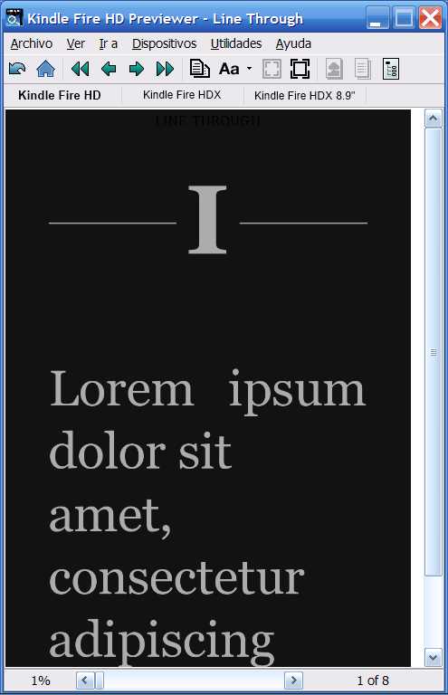 Yes, I think you're right. Watch the following images: 1. Kindle Previewer (font-size: 3) 2. Kindle Previewer (font-size: 11) As you can see, with a font-size "3", instead of "--- I ---- " we could also have written "--- II ---- " without problems. But with a font-size "11" that is not possible. So, we need to add code to manage that issue with bigger font-size and my "perfect solution" was not so perfect