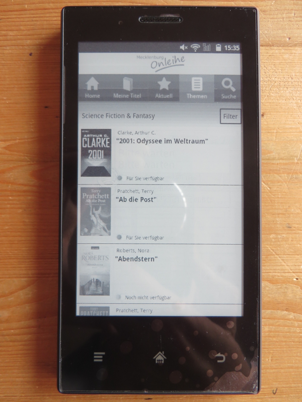 Ein paar Worte zum Lesen mit dem e43: Neben dem Onyx Reader war der FBreader vorinstalliert. Aus dem Regal-Icon unten rechts im Homescreen kommt man zur Bibliothek, in der die Bücher in der Voreinstellung in der Coveransicht dargestellt sind. Ein langer Druck auf das Cover öffnet ein Auswahlmenu, dass auch die Option "open with" enthält. Ich habe, da ich ja auch Aldiko installiert hatte, dann momentan also die Auswahl zwischen den einzelnen Leseprogrammen und kann eine App als default einstellen. Der Onyx Reader gefällt mir bisher gut und war zu meiner Überraschung auch in der Lage, ein 60seitiges PDF im reflow im Querformat ordentlich lesbar und ohne lange zu zögern darzustellen. Aldiko macht was es soll, wenn man die störende Umblätteranimation sofort abstellt, die sich auf eInk ja nicht so gut macht. Das Zusammenspiel von Onleihe und Aldiko auf dem e43 funktioniert als reine Androidgeschichte genau so reibungslos wie ich mir das gewünscht hatte. Vom Erst-Adobeeinbuchen via Aldiko bis zum Onleihebuch-Lesebeginn eine Minute. Sehr fein. Und: Doch, das Ding hat eine schöne Glasfront. Wenn man es darauf anlegt, dann spiegelt es also. Fotos gibts gleich: Last edited by beachwanderer; 07-08-2014 at 11:20 AM. |
