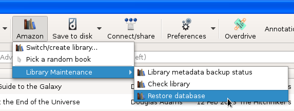 I found how to run Library Maintenance and Restore Database. It has done so, but still no books showing on my calibre? |