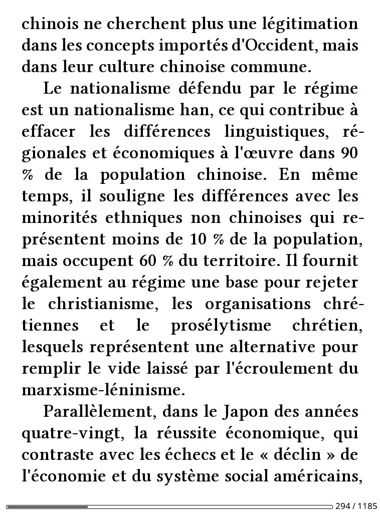 Thanks for your help. I hope some others will learn from my mistakes. ![]() As the advised tweaking of the font.hinting.mode brought no discernible change for emboldening, I realized that there should be another reason: my mistake was that I had kept the the "embedded style" ON while I was using a side-loaded font... Now, when I select "embedded style": OFF, I got these results for "regular" and "bold (see screenshots) using my side-loaded font. The emboldening looks a little too strong. Such a setting cannot probably be kept for a whole book. It would be precious if the user could have some control over it (like for frontlight levels). Edit: screenshots taken with font.hinting.mode left to 2. Last edited by roger64; 07-26-2014 at 03:26 AM. Reason: note |