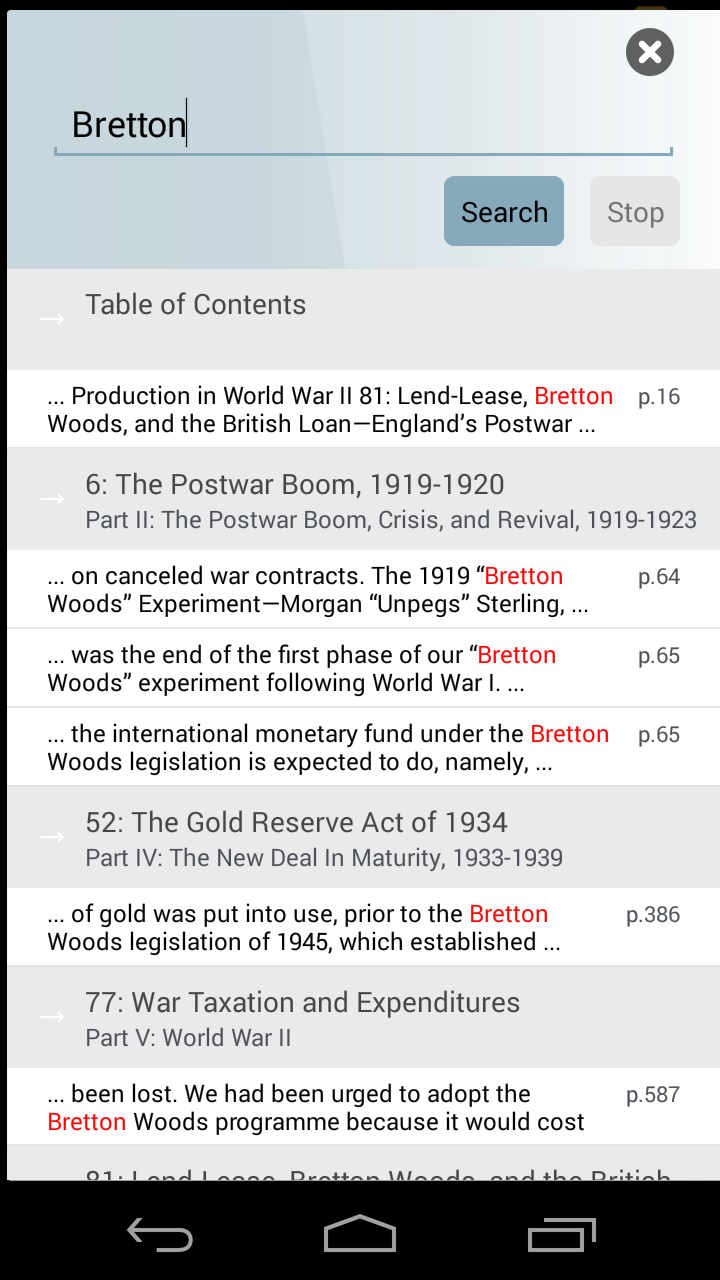 Now I have to go through, and check all 14 usages of "Deflation" and all 2 usages of "dialectical materialism". Now I have to compare this to the physical book's Index. Now I have to double-check every link to make sure that where it points to is actually RELEVANT, AND falls in the text that the physical Index referenced (for example, I have to find that Sigil's new "dialectical materialism" links (1, 2, 3, 4,...) actually FALL in between the text on pages 79-84. Now I have to make sure that all 14 entries of "deflation" falls into the page numbers referenced in the Physical book's Index. Each one of these comparisons takes AT LEAST 20 seconds (probably much longer) to double-check and read the sentence/paragraph to see if that spot is relevant. Let's say I can get 3 done in a minute (being generous), with an Index of hundreds/thousands of links, this adds up to HOURS and HOURS of work. As you can see, the work that actually has to be done, to create a PROPER linked Index, goes exponentially THROUGH THE ROOF. As Hitch said, it is very easy to create a crappy Index, but to DO IT RIGHT, it is absolutely brutal. And what is the entire point of wasting all the manpower on that crap, when you have a full SEARCH at your fingertips. Edit: Actually, the way I did Sigil above only found the capital "D"eflation, if I added in the lowercase variant, the amount of links in Sigil's Index jumped from 14 to 40. So that would be, on the extremely low end, at least 13 minutes of work just for one word. Side Note: This isn't even covering all the other work/manpower that has to go into creating a great Index (it really is an art, and I don't feel like writing another tome ). For example, you have to handle multiple variations of the same word. In the physical Index, it might just say, "Speculating", but you have to cover the words "Speculate," "Speculates", "Speculation", "Speculative", .... Now that "13 minutes for one word" estimate? Yeah, that goes much higher.How do you handle when the name/word is referenced multiple times within a short span? Do you just point to every single line/paragraph the word is mentioned? What if "Deflation" was mentioned in 10 paragraphs between pages 419-421? Are you going to have 10 links that jump you to "the same" general location? Quote: