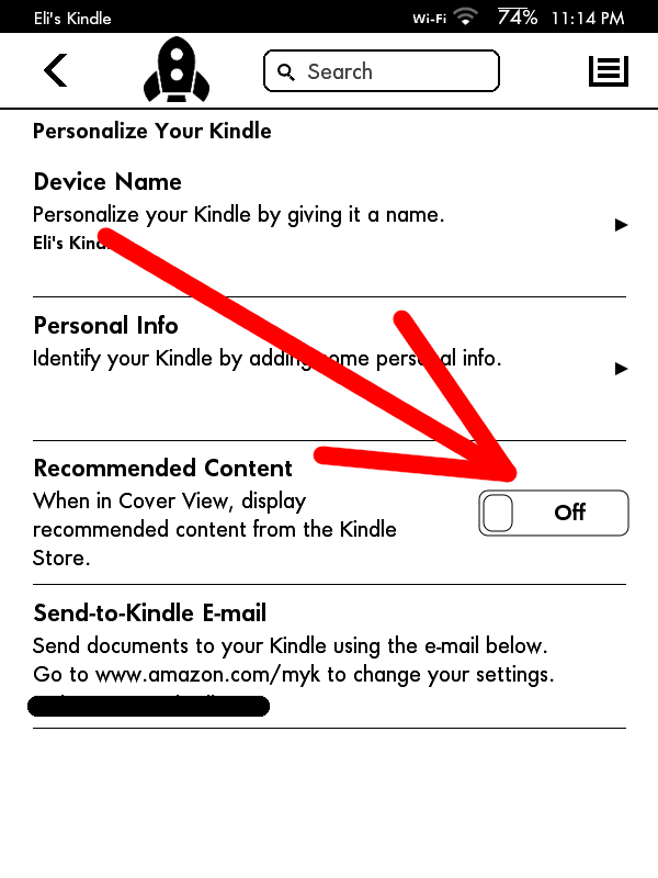 Here's the Paperwhite home page. It also has space used up by recommendations.