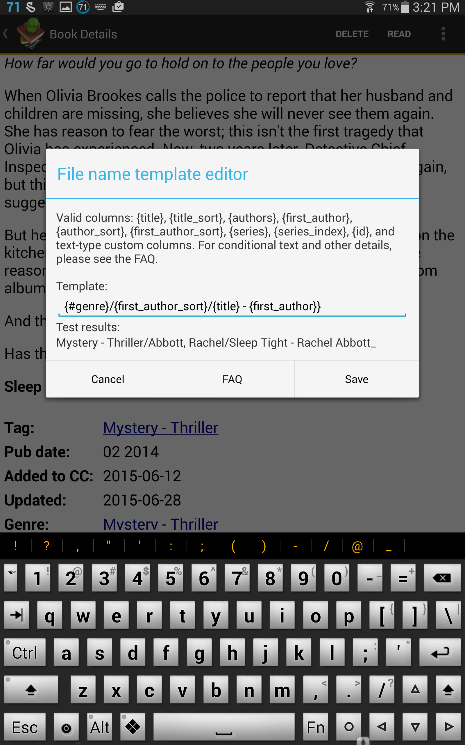 Result for Books with series as expected. _Series/1 - Title - First Author Result for books without series as expected: First Author/Title - First Author So far so good. If there would be the possibility to define the amount of digits (so that files get correct listed in case there are more than 10 books in a series) in "series_index" i would be more than happy..jaja. I love it. Looking forward to Calibre 2.32, so that CC can take his template when books are pushed from Calibre to CC with Wifi. Last edited by Thomas_AR; 06-29-2015 at 12:54 AM. |