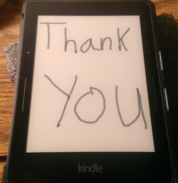 unzip kindle-5.4-jailbreak.zip For the morbidly curious and in case it might contain some info of use to someone or you just want to laugh at me bungling at a command line, here's a pastebin of the PuTTY log. Oh, and to you and everyone else who has done such a great job working on this stuff, including you, DennisH, knc1, NiLuJe, and everyone else who has done so much to help with the public knowledge of our devices, I just wanted to say: (custom screensaver from the screensaver hack) |