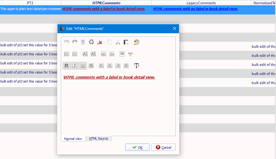It does exactly what I wanted with a new datatype plus what the poster of this thread requested. If the comments are plain text, they will only wrap in the book details if they are really long. If they are short, like a Tag is, they would not wrap in the book details. They are not long text. They are whatever is entered by the user. Never html. The name of the datatype comments shown in preferences no longer says long text, but general text. Not long. Not short. Up to the user. Html or plain. Up to the user. With labels or without. Up to the user. The editor is always a single line for plain text. Bulk or single. See the images. Html uses the legacy html editor widget. Single only. Not bulk. Multiline only exists for html. If you want long multiline html text with no labels and a multiline editor, do not use plain text. If you want short plain text with labels, easy. Its editor is single line only, but that single line can be as long as the user wishes. I think you misunderstand what it is and what it does. People will be confused by your comments because they are wrong. DaltonST Last edited by DaltonST; 07-21-2016 at 07:44 PM. Reason: typos on my phone... |