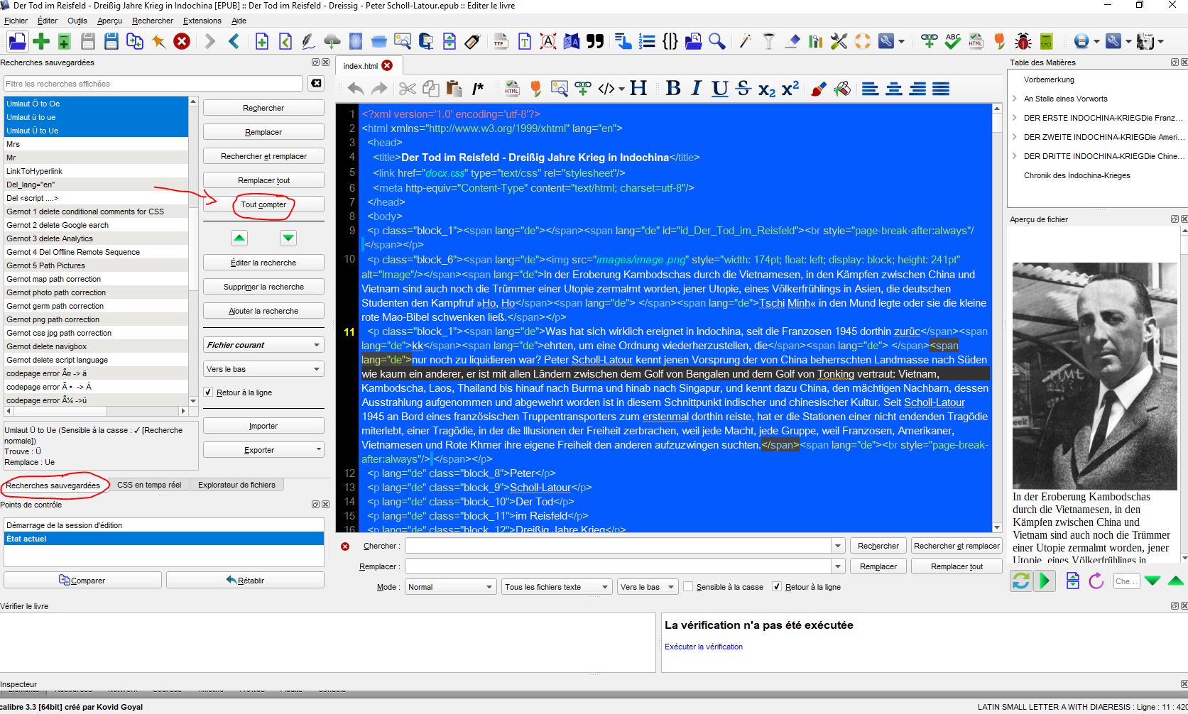 I remarked a curious thing. I have a group of ten saved searches, numbered from one to ten that I use quite frequently. I call this group with the filter "insé". It allows me to insert narrow no-break spaces in any French language EPUB. I can export this group as a .json file using the "export" button of the Calibre editor. If I import it back, it will be displayed in reverse order (from ten to one). Only after restarting Calibre will it appear in the right order (from one to ten). This quirk may confuse some users. I do not know if I made a mistake somewhere. Experience tells me that this is surely what happens, but I fail to spot it.