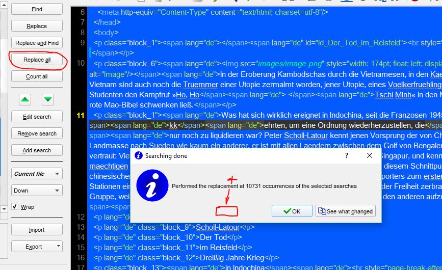 Kovid, maybe it is possible to add this view also as selectable option for <replace all> too (somehow like in pic 4). Edit: @Kovid, I didn't saw that there was a second page with your answer
