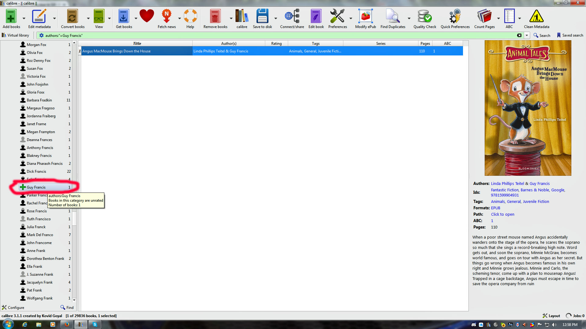While using the tag browser I'm having problems with the focus of the location on the tag browser when changing authors names or deleting their books. When I make any changes of an author's name that has 1 or more books, such as, when I swap an author's LN FN to FN LN (using Quality Check) on all their books or delete all of an author's books (1 or many) using any version of Calibre 3 so far; the focus jumps to the top of the authors list. NOTE: While typing this, I'm doing more testing to make the attached pictures. I'm finding that if the name in the list no longer appears as it was (i.e. LN FN to FN LN) the focus jumps to the top of the list. This happens even if the changed books of the author combines with other books of the same author in the list. When doing any of these actions in version 2.85.1 or earlier, I don't have these problems. The focus centers on the list at the location of the author being changed or where the author was if deleting all of their books. Now, all of these changes are being done inside of the booklist area. I change the author's name by clicking on the author(s) area of the booklist or highlighting the book(s) if using the QC button. Also, I remove all books of an author that I'm getting rid of by using CTRL A in the booklist and then using the Remove books button. Also, I'm using the 64bit version on Windows 7. Description of the attached pictures: These pictures are showing changes from version 2.85.1: Pic01 shows a LN FN that will be changed to FN LN in the list. Pic02 shows the results of using the Quality Check button. The changed name merges with the other book and the focus stays near the middle. Pic03 shows the author that I will remove. Pic04 shows that the removed authors place is now centered in the list. These pictures are showing changes from version 3.2.1: Pic05 shows a LN FN that will be changed to FN LN in the list. Pic06 shows the results of using the Quality Check button. The focus has jumped to the top of the Author tag list. Pic07 shows the changed author correctly but I had to scroll down to the location. Pic08 shows the author that I will remove. Pic09 shows that the focus has jumped to the top of the Author tag list. Last edited by BetterRed; 07-01-2017 at 01:38 AM. Reason: Moved the pictures in-line with the related text |