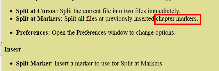 The sigil doco (0.7.2) references splitting at chapter markers, viz:
