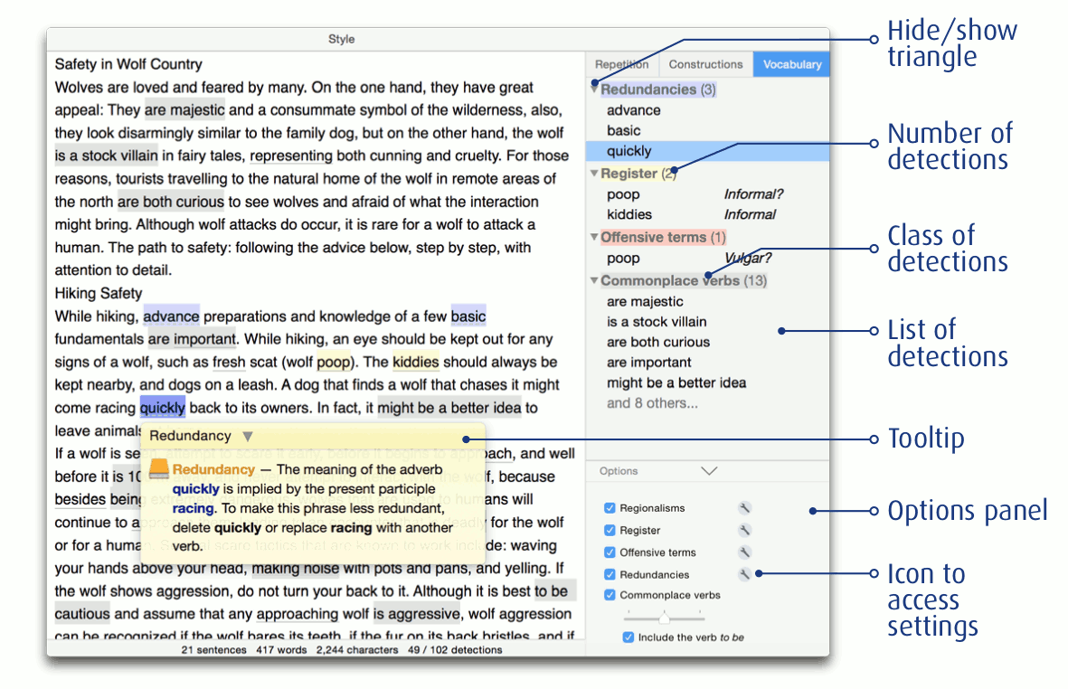 There's also a "Repetition" checker: