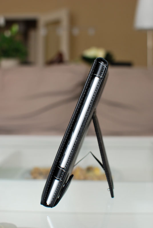 I just realised that I made a mistake in my previous entry. I actually don't use the actual stand to hold my reader up, I use the cover when it's flipped back. Overall, I'm very pleased with this case. It's kept my sony reader safe from all the junk I usually carry around with me. The only changes I would make are: - The SD card pockets. I don't need them & their location isn't ideal. - The strip that runs down the right side of the reader isn't necessary. - Don't need the stand (the cover works fine as a stand when it's flipped back) - More colours/patterns.