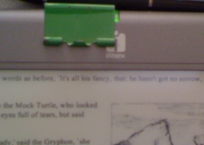 Of course the right thing to do is to talk to iRex and send my DR to the Netherlands, but I hated to part with it for a few weeks. So I 'fixed' it myself this time. ![]() I observed that if I put gentle pressure around the point on the top of the bezel where the bezel meets the line in problem, then the line out problem vanishes. I guess this could be some kind of problem in soldering or something similar. So I put a clip on that part of the bezel, and now I can use DR with no line out problem. So far so good, except that I'm not sure whether this is a good enough fix or only a stopgap which will fail eventually. Perhaps I'll have to send it to iRex eventually, when I'm less busy and before the warranty expires. Last edited by aegas; 07-28-2009 at 12:34 AM. |